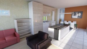 TUFF+ home kits are supplied with Group I equipment including a kitchen cabinet with sink and an island with an induction cooktop!